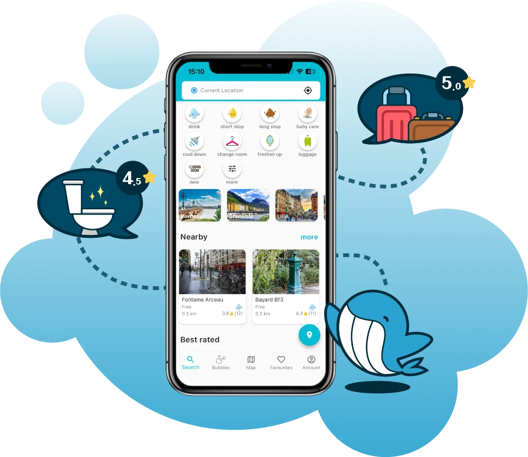 BubblesMapper promotes hygiene, health and well-being and relieves people of urban annoyances and anxieties in order to empower them to focus on city experiences and social bonding.